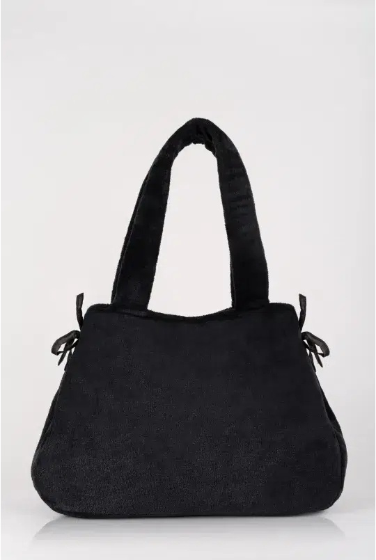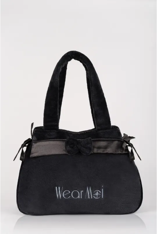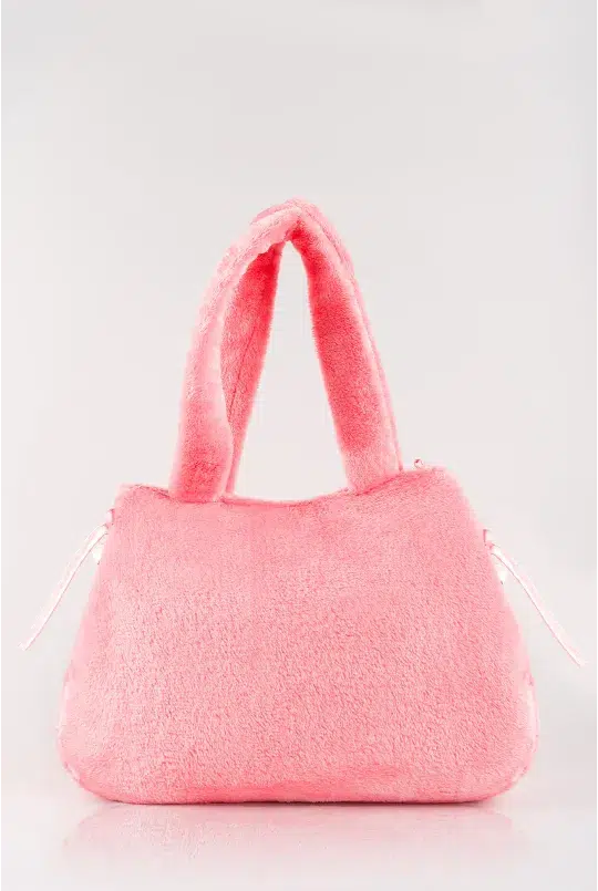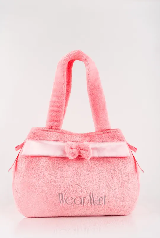 Its faux fur material brings a soft and comforting touch, while the satin flap, adorned with a small decorative bow, signals its playful spirit.