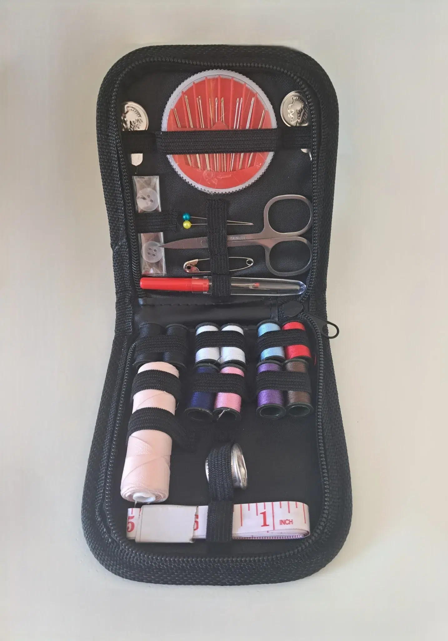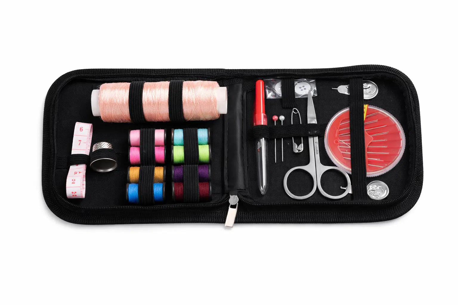 Le kit de couture qui vous accompagnera partout grâce à son étui à fermeture zippée comprend: